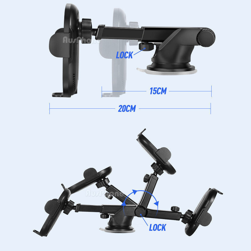 Automatic Clamping 15W Wireless Car Fast Charger Mount 2in1 Car Phone Holder